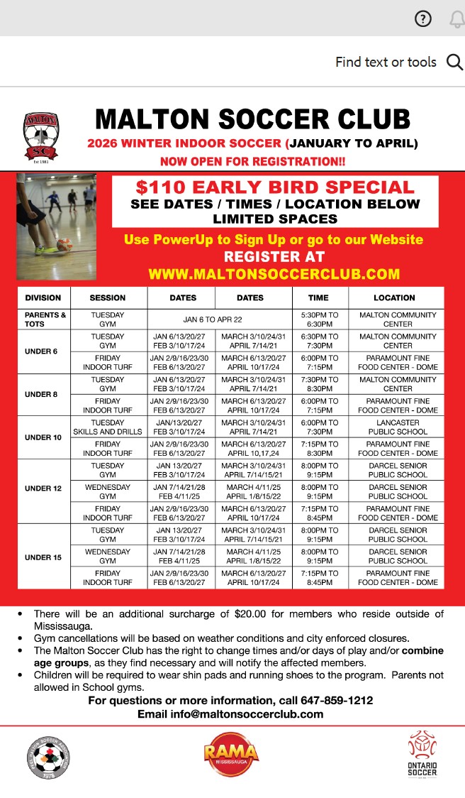 For questions or more information email: info@maltonsoccerclub.com
